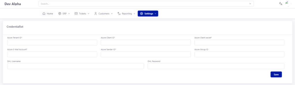 Unter Settings -> Credentials ist der Endkunde mit gesetzten Berechtigungen in der Lage, die Authentifizierung über Microsoft 365 zu konfigurieren.
