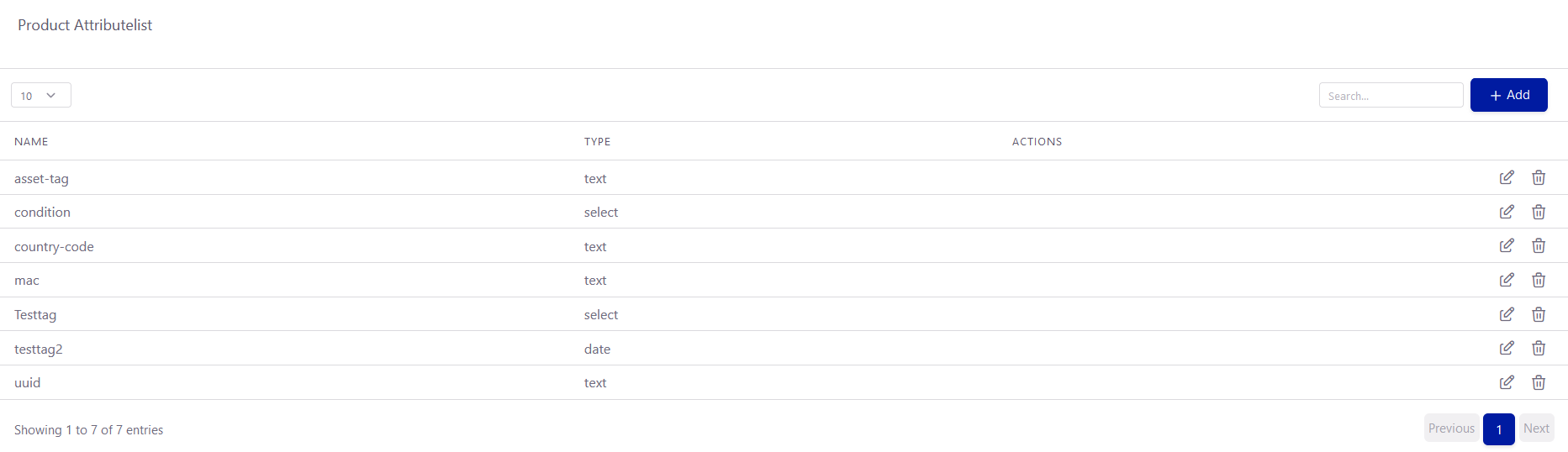 Unter dem Menüeintrag ERP -> Products -> Attributes, kann man eine ganze Produkt-Attributliste einsehen, in der man Attribute über +Add erstellen, bearbeiten und bereits erstellte löschen kann.