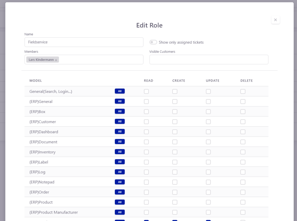 Unter Settings -> Roles and Permissions, kann man eine Rollenübersicht in Form einer Liste aller definierten Rollen im System verwalten.