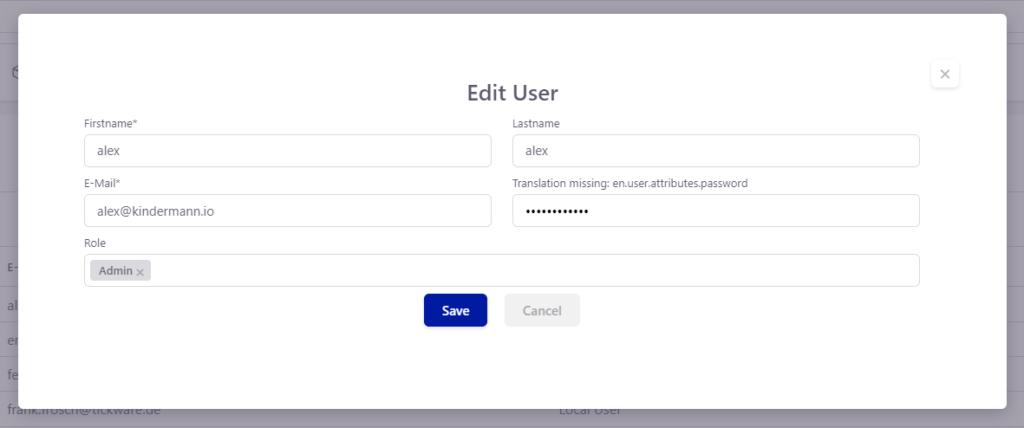 Unter dem Menüeintrag Settings -> Users finden Sie eine Übersicht aller im System verfügbaren Nutzer. Neue Nutzer können über „+ Add“ hinzugefügt werden und bestehende können über das Bearbeiten-Symbol bearbeitet werden.